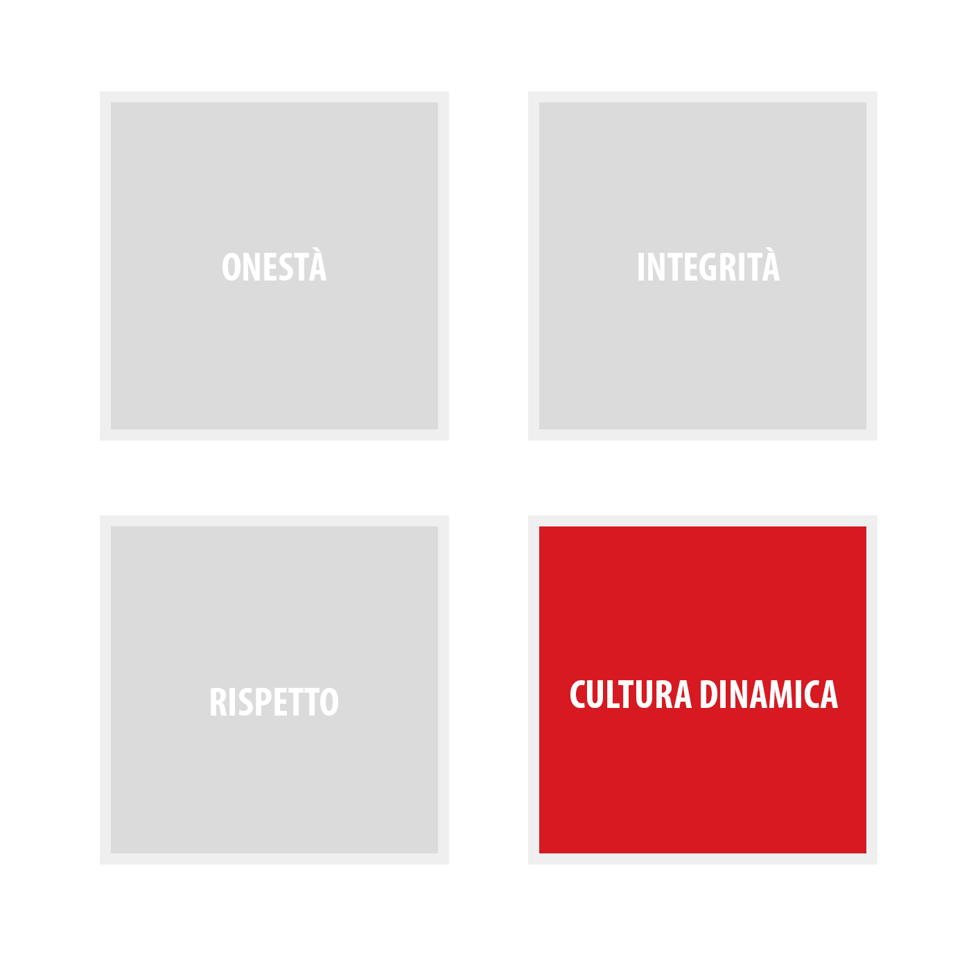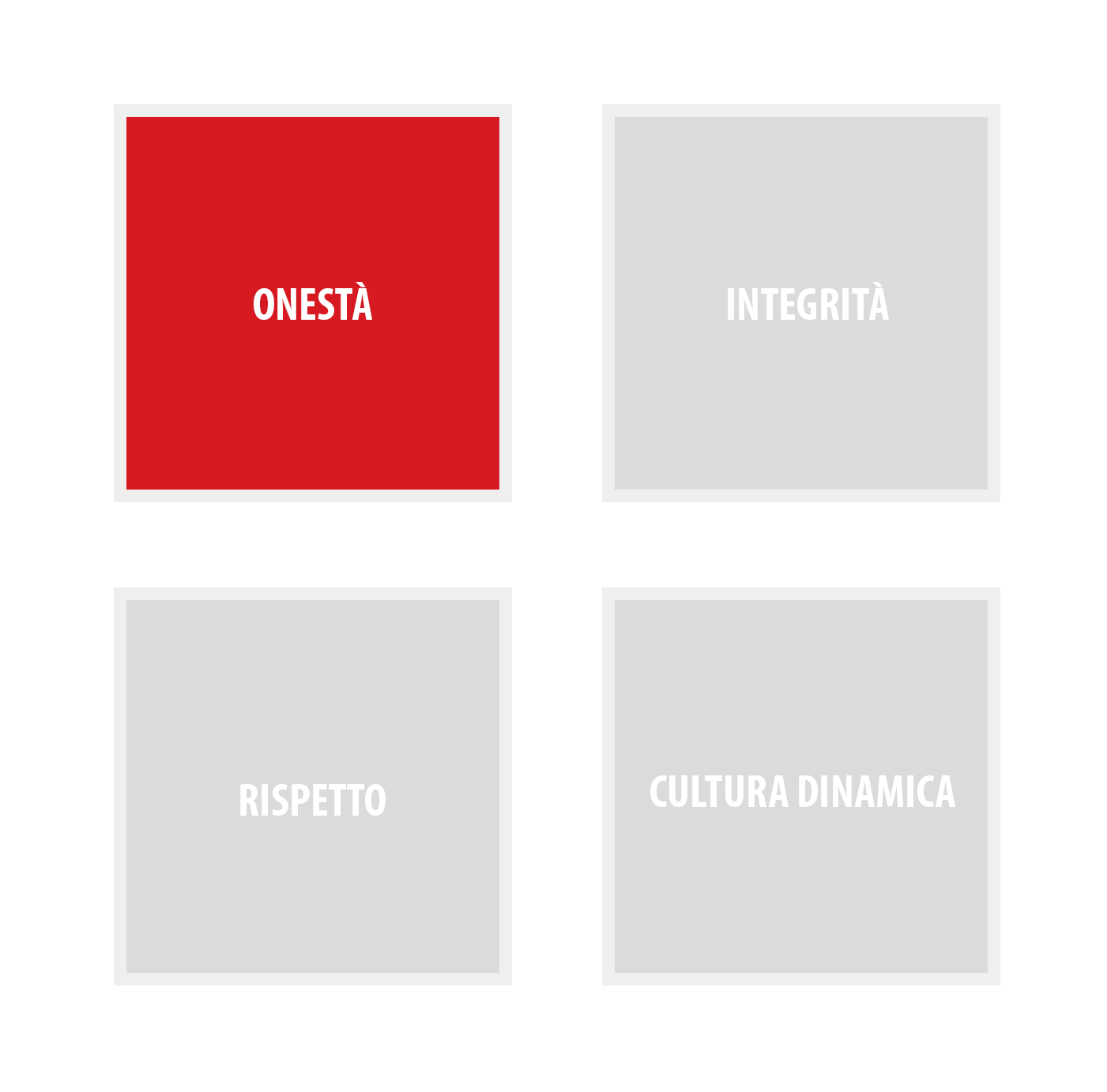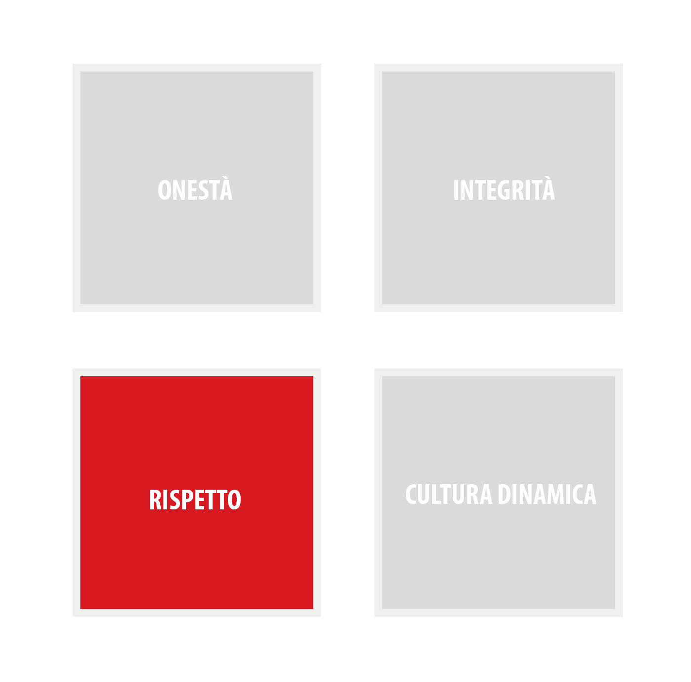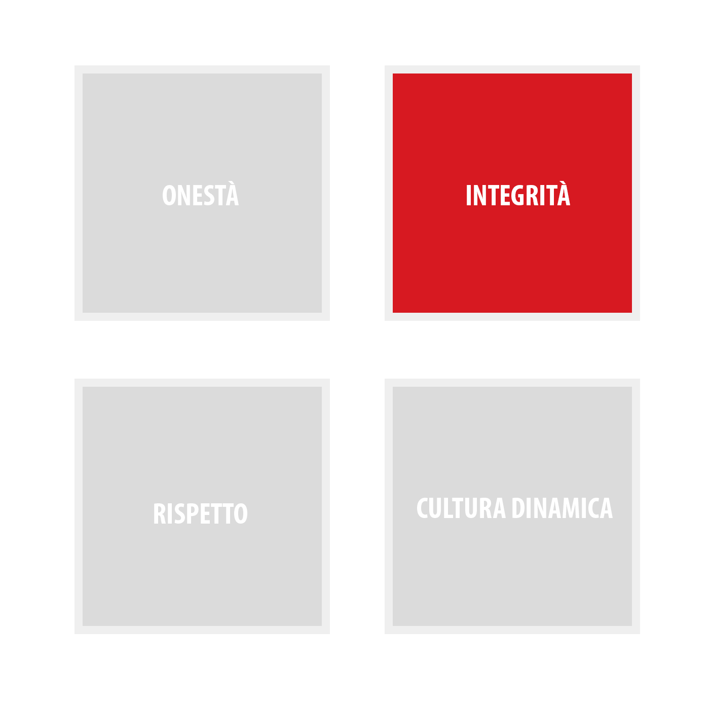 La nostra parola è il nostro legame. Facciamo ciò che diciamo. Viviamo il nostro lavoro secondo i più alti standard di equità e comportamento etico.